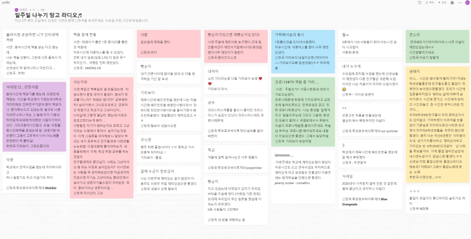 학급 특색 활동; 일주일 나누기 라디오 (라디오 운영 시간이 부족한 주에 패들렛 활용)